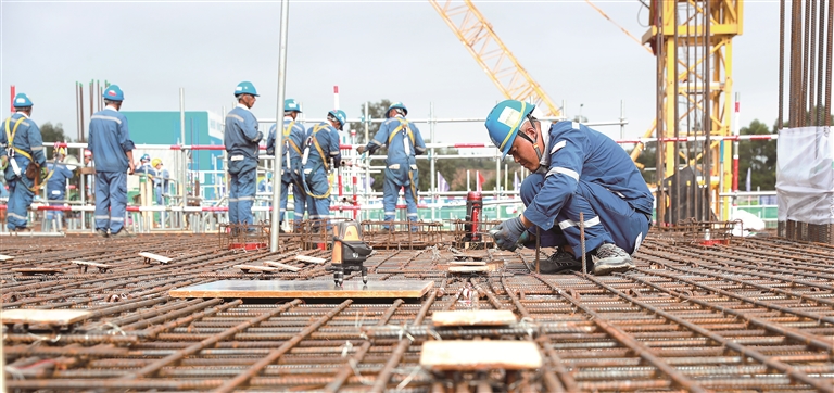 “玲龙一号”建设现场,工人正在进行钢筋绑扎。刘玄 摄
