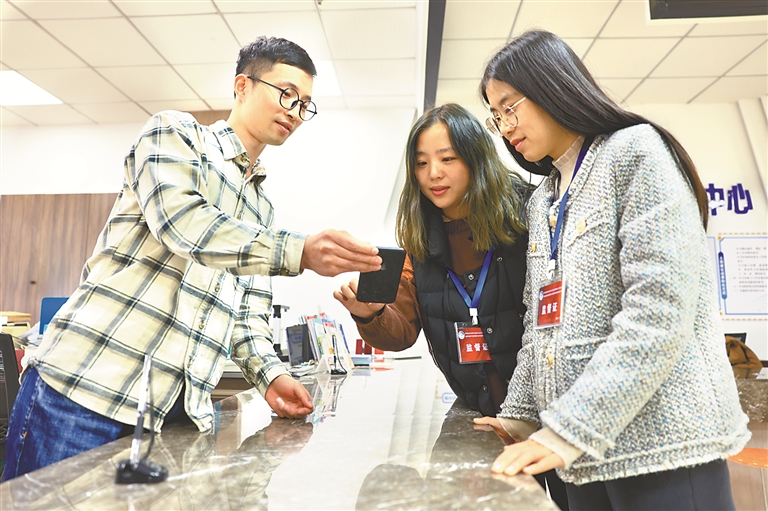 浙江省杭州市临平区纪委监委开展“指尖上的形式主义”专项整治,对过多的手机工作群、政务APP进行清查整治,切实为基层干部减负。图为近日,该区纪检监察干部在梅堰社区中心走访了解相关情况。陈雯 摄