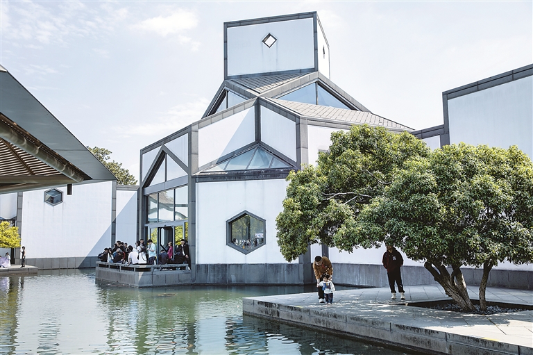 苏州博物馆自建成并对外开放以来,吸引了大量游客前来参观游览,领略江南建筑之美,了解中华传统文化。苏州博物馆既有现代感,又极具中国传统建筑韵味,体现了“中而新”的文化风格。图片来源:视觉中国