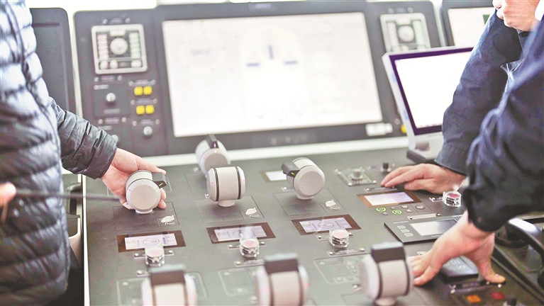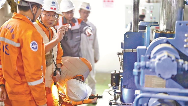 图②:“梦想”号试航期间,监造组检查船舶动力系统运行情况。