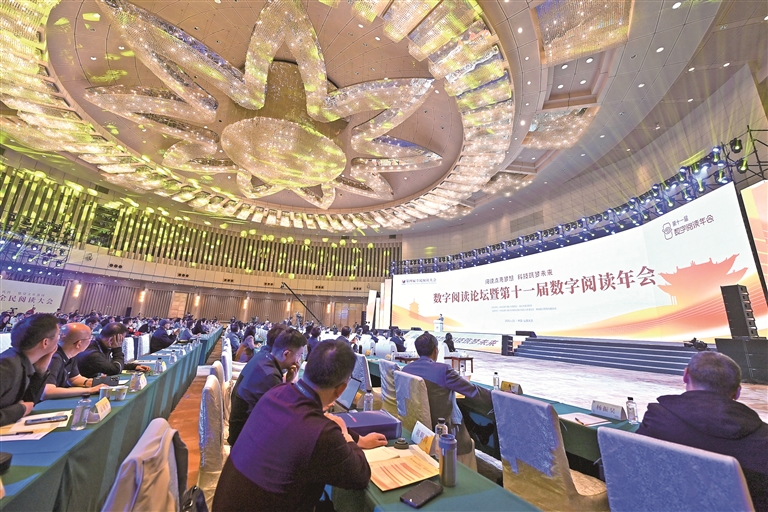 4月23日,第四届全民阅读大会数字阅读论坛暨第十一届数字阅读年会在太原举办。大会以“阅读点亮梦想,科技筑梦未来”为主题,旨在持续深入落实国家文化数字化战略,进一步深化“内容+科技+融合创新”,不断推进文化产业数字化发展、促进全民阅读生态创新。最美人间四月天,正是读书好时节,图为年会现场。新华社记者 杨晨光 摄