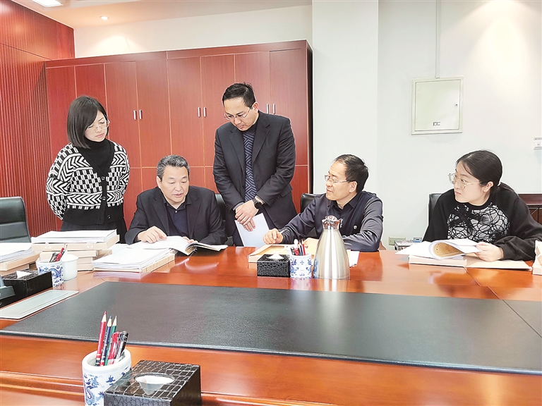 图为宁夏回族自治区纪委监委第八审查调查室和案件审理室工作人员围绕张宏年案件有关问题进行研讨。栾志丹 摄