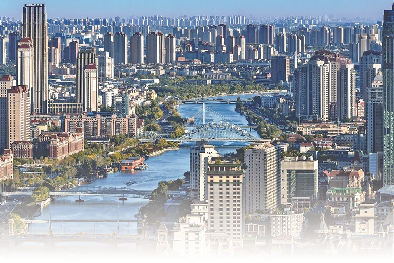 近年来,天津坚持走内涵式发展之路,进一步优化生产生活空间,推动城市业态、功能、品质提升。图为天津海河岸边城市风光。