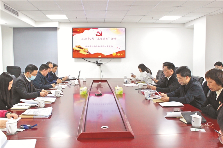 近日,驻税务总局纪检监察组党支部开展主题党日活动,会上集体学习新修订的纪律处分条例,并结合税务系统正反两方面典型开展警示教育。来喆 摄