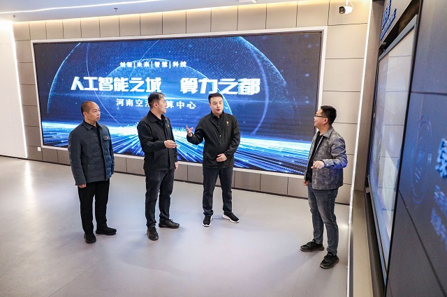 河南省郑州航空港区纪检监察工委建立发展新质生产力监督清单,从惠企政策落实、人才引进、职能部门履职等方面强化监督。图为近日,该区纪检监察干部走访了解空港智算中心建设情况。蒋洪超 摄