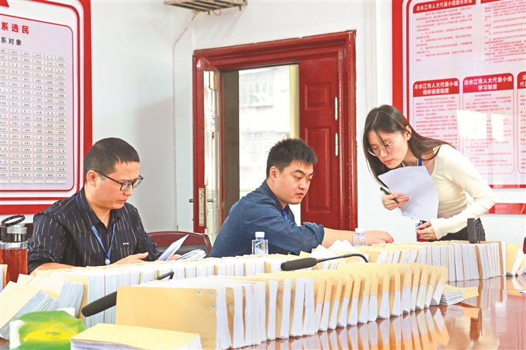 湖南省冷水江市纪委监委联合市审计局等部门组成“四风”问题监督检查组,让监督检查更细致、更专业。图为监督检查组在查阅财务账目、报表和凭证。 张伟琳 摄