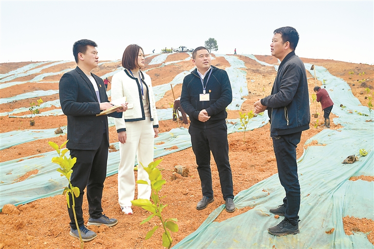 湖南省衡东县纪委监委坚持“巡纪审”联动,聚焦乡村振兴和生态环保强化监督。图为该县纪检监察干部和巡察干部深入草市镇福塘村涉农产业项目现场,向村干部了解相关情况。 刘昶 摄