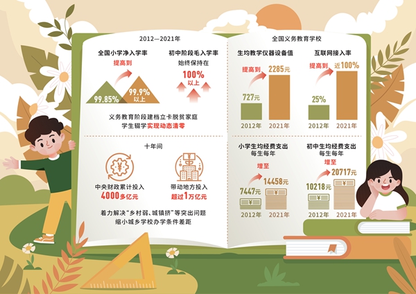 教育是国之大计、党之大计。十年间,我国义务教育已从基本均衡转向优质均衡,优质教育资源正从城市走入乡间,区域差距、城乡差距不断缩小。越来越多的孩子正在通过读书走出大山,走向希望,为国家发展、社会进步不断注入源头活水。(王斯英)