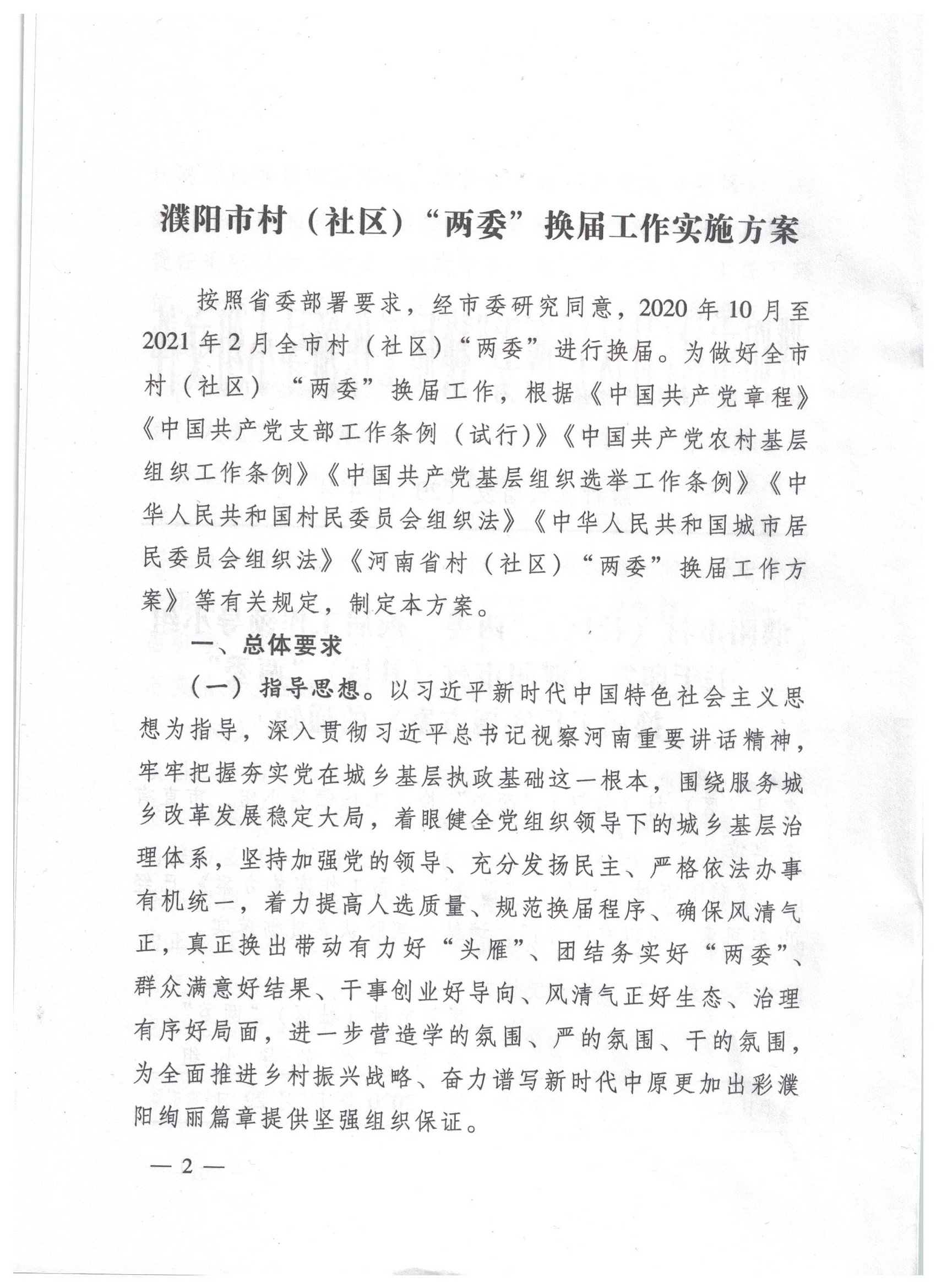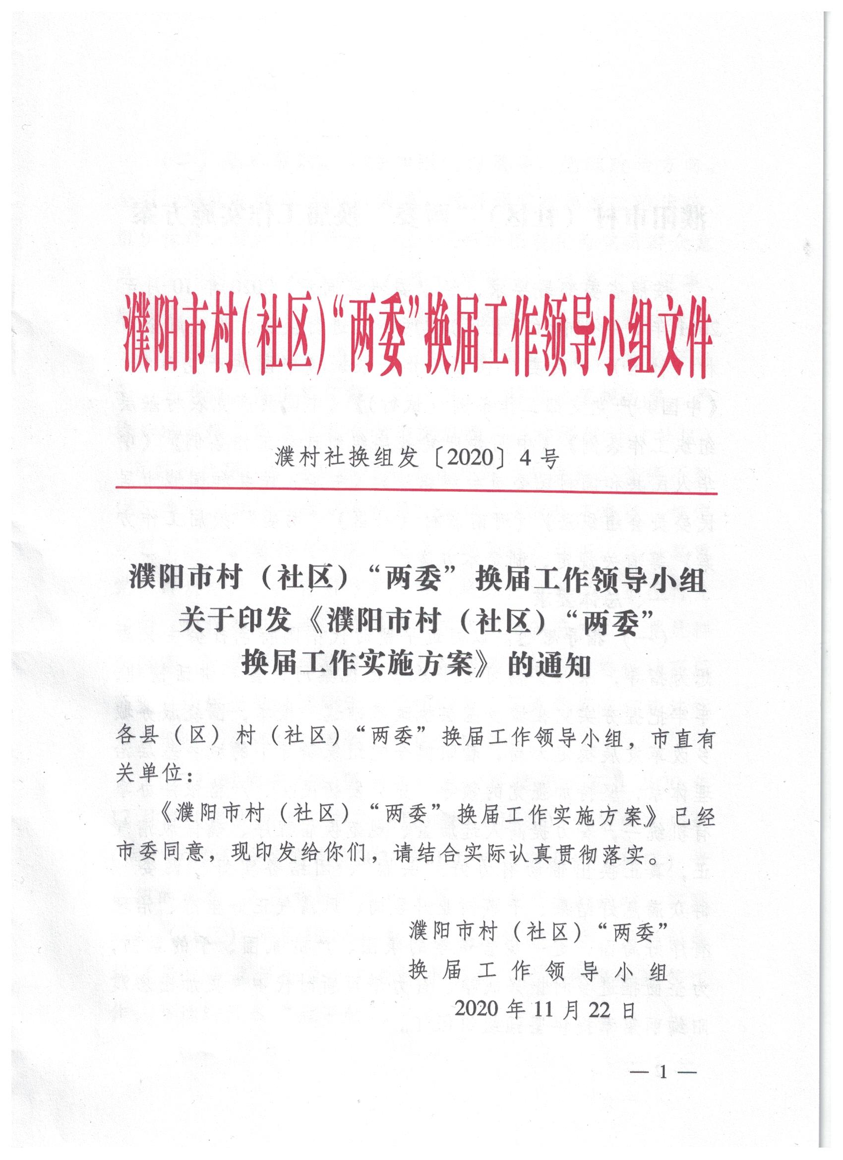 濮阳市村(社区)“两委”换届工作领导小组 关于印发《濮阳市村(社区)“两委”换届工作实施方案》的通知