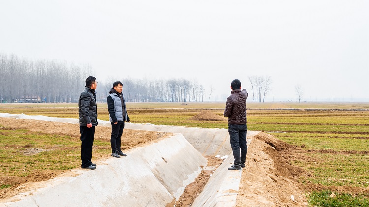 王希法到正在修建的灌溉渠查看沟渠两侧土壤解冻情况。该渠计划投资265万元,灌溉口通到田间地头,解决长期以来困扰村民灌溉难的问题。如果天气允许,抓紧把剩下的一小段连接完整,不影响春灌。