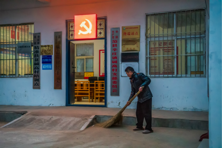 王希法开始打扫村委会大院。这是他驻村一年多来养成的生活习惯,打扫卫生既锻炼了身体,还让身子暖和起来。