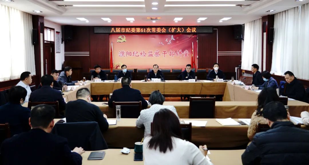 会议深入学习了习近平总书记在二十届中共中央政治局第二次集体学习和在学习贯彻党的二十大精神研讨班开班式上的重要讲话精神,传达学习了中共中央政治局常委、中央纪委书记李希在二十届中央纪委常委会第二次集体学习时的讲话精神,传达了2022年全省纪检监察机关监督检查审查调查工作有关情况,学习了省纪委监委关于深入贯彻落实中央八项规定及其实施细则精神和做好信访举报工作的有关文件精神,讨论了《中共濮阳市纪律检查委员会关于充分发挥纪检监察职能作用积极推动干部敢为、地方敢闯、企业敢干、群众敢首创的实施意见》和《濮阳市纪委监委派驻机构工作实施细则》,研究我市贯彻落实措施。
