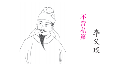 李义琰为官十年,清正廉洁,位居宰相时仍住在几间简易瓦房内,室内摆设除一桌两椅一床外,再没有别的物件。时任司功参军的弟弟李义琎看不过去,专门为他买来建厅堂的木材,多次劝他建造“宰相府”,以显示李家尊严。李义琰却对弟弟的劝说不予理会,说:“皇上让我做宰相,我自觉不能胜任,甚感惭愧,还有什么资格营造豪华相府呢?你能为兄长操心盖房,我知道这是咱弟兄之间的情分,可你想过没有,你这样做是加速我祸患的到来,不是爱我,是害为兄啊!”李义琎说:“当下,连县丞、廷尉级别的小官都建有府第高舍,像兄长你高居相位,你若不盖相府,你的下属该怎么办呢?这分明是逼下属效仿与你,岂不是有点太不近人情了吗?”李义琰说:“事情总不能全都遂愿。我身为宰相,已经是官高位显了,再去扩建府邸,就会失去好的名声和品德,也必然会灾祸临头。”最终李义琰也没有答应建造府邸之事。