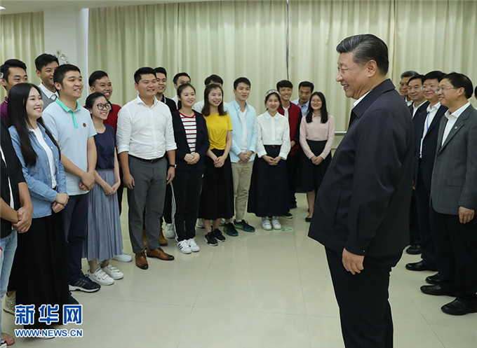 10月22日至25日,中共中央总书记、国家主席、中央军委主席习近平在广东考察。这是10月24日下午,习近平在广州考察暨南大学时同部分港澳台同胞和海外侨胞学生交流。新华社记者鞠鹏摄