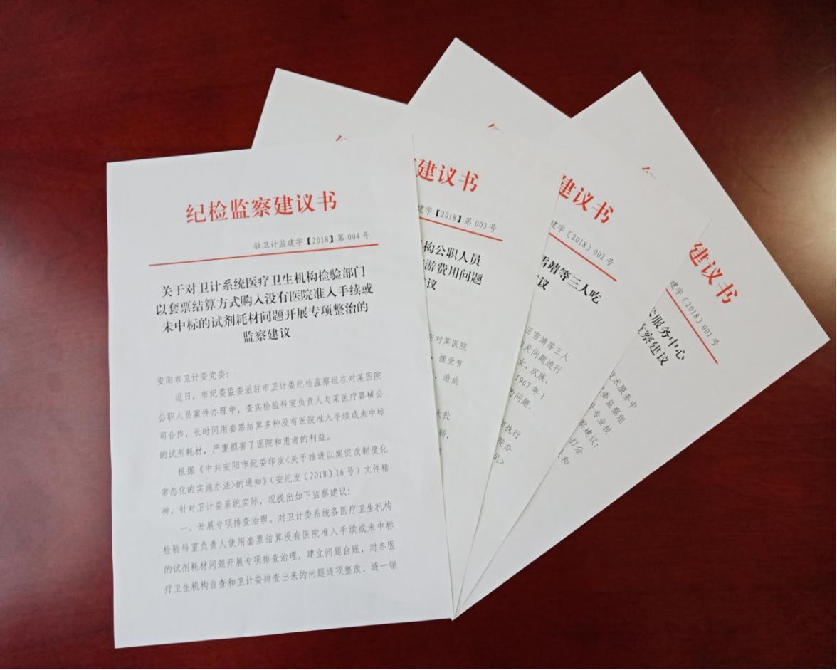 近日,派驻市卫计委纪检监察组根据监察法规定,认真履行监察职能,连续下发四份监察建议书,通过强化“再监督”,灵活运用“四种形态”,开出“点穴式”精准药方。