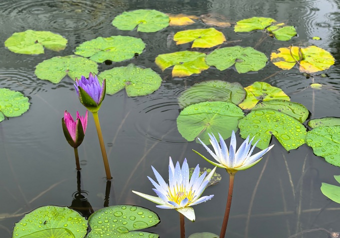 白露至,残暑收。池中睡莲历经夏日骄阳洗礼,于绵绵秋雨中抱香而立。雨滴漾起微涡,翠盏承着冷露,朵朵花枝傲然挺立,在凄风冷雨中愈显君子风骨。(洛阳市涧西区纪委监委 梁瑜 摄)