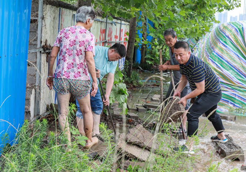 雨情就是号角,汛情就是命令。襄城县湛北乡山前杨庄社区监督信息员魏广才冒雨跳进臭水沟,用双手清捞杂物,疏通沟渠。