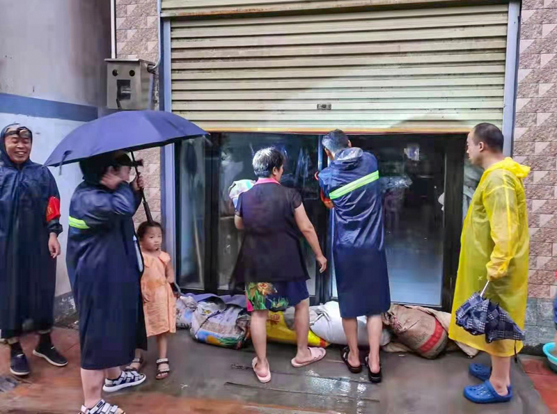襄城县城关镇纪委在做好防汛物资储备、安全预案监督检查的同时,冒雨排查风险隐患,帮助商户用沙袋堵门,防止雨水倒灌,减少群众损失。