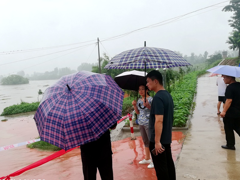 襄城县颍回镇纪检监察干部主动履职尽责,在颍河沿线查看水位汛情、人员安排和防汛物资筹备等情况,确保人民群众生命财产安全。