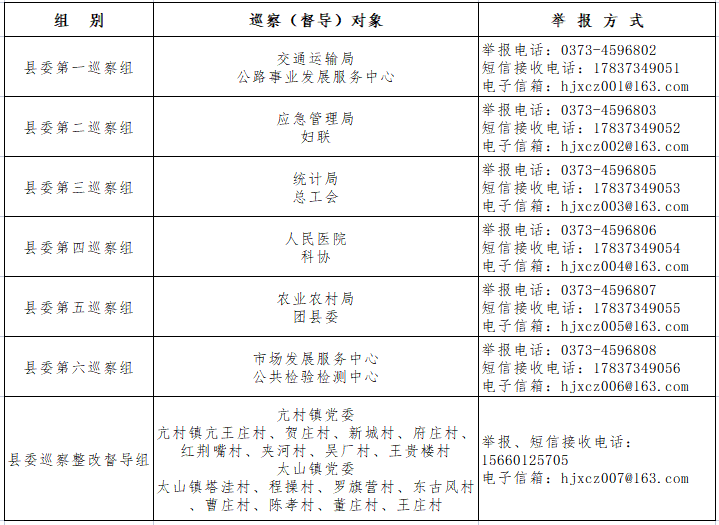 现将举报渠道公布如下,欢迎广大干部群众向巡察组反映有关情况和问题。