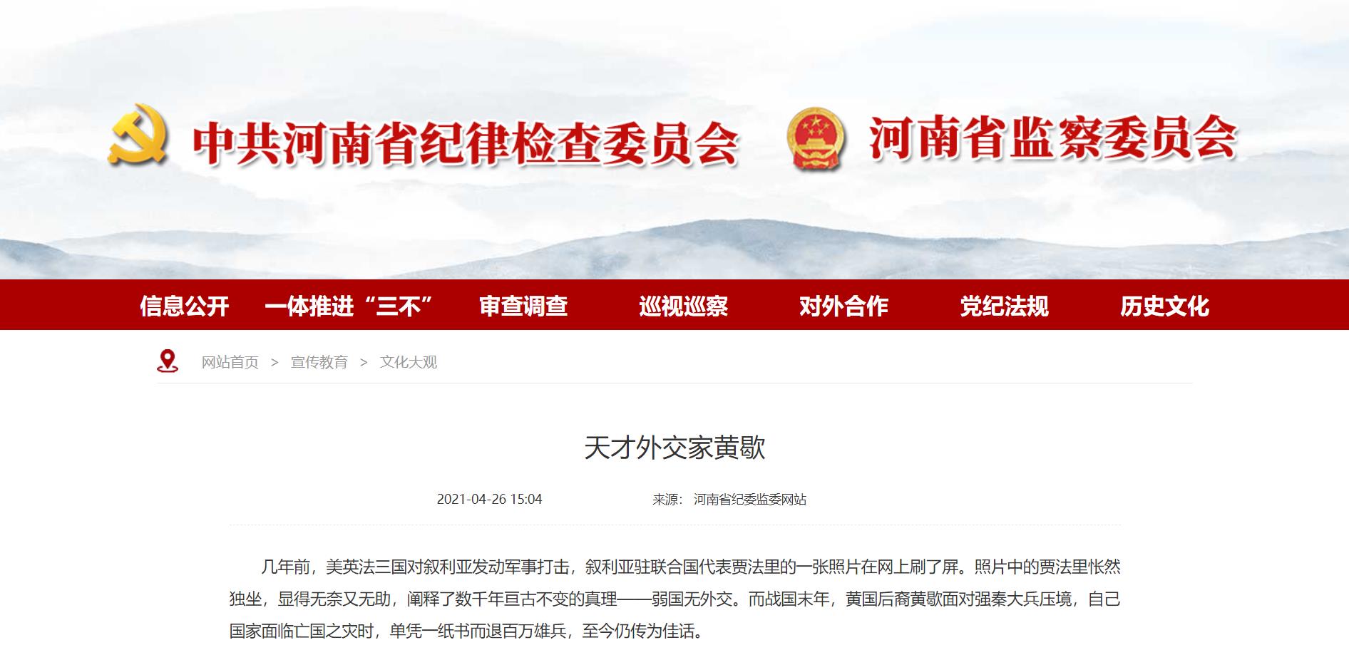 几年前,美英法三国对叙利亚发动军事打击,叙利亚驻联合国代表贾法里的一张照片在网上刷了屏。照片中的贾法里怅然独坐,显得无奈又无助,阐释了数千年亘古不变的真理——弱国无外交。而战国末年,黄国后裔黄歇面对强秦大兵压境,自己国家面临亡国之灾时,单凭一纸书而退百万雄兵,至今仍传为佳话。