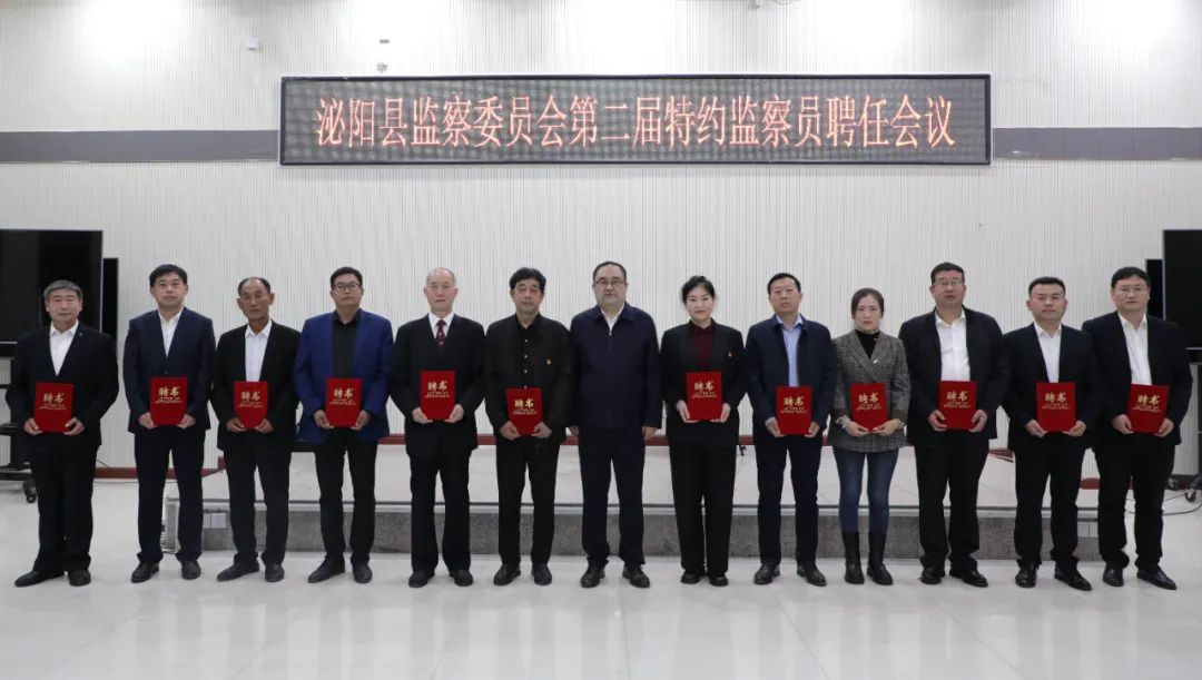 “《泌阳县监察委员会关于聘任第二届县监委特约监察员的决定》宣读完毕,下面有请钱学俊同志为各位特约监察员颁发聘书......”在热烈的掌声中,泌阳县公共资源交易中心主任南昉、马谷田镇河南村党支部书记余永立等13名社会各界代表,依次从泌阳县委常委、县纪委书记、县监委主任钱学俊手中接过聘书,正式成为泌阳县监察委员会第二届特约监察员。