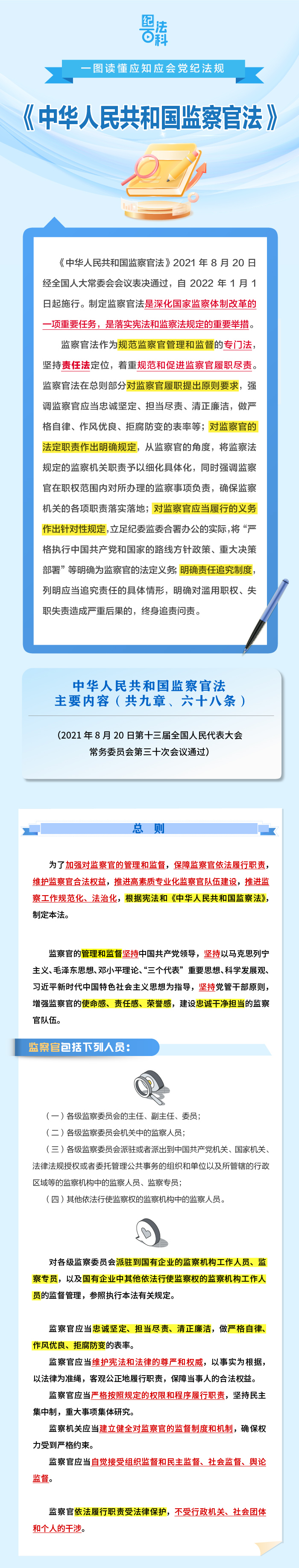 纪法百科·一图读懂应知应会党纪法规 中华人民共和国监察官法