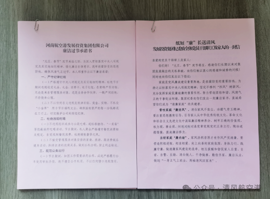 国廉则安,家廉则宁。在签订《廉洁自律承诺书》的同时,向职工家属发出廉洁家书,号召家属成为“清廉家庭”的共建者,鼓励家属常吹“廉洁风”,当好“廉内助”、算好“廉洁账”,充分发挥家庭助廉作用。清风扬正气,廉韵贺新岁。河南航空港发展投资集团纪委将持续推进党风廉政建设和反腐败斗争,坚持把党风廉政建设与重点工作同部署、同落实,为集团平稳健康有序发展保驾护航。