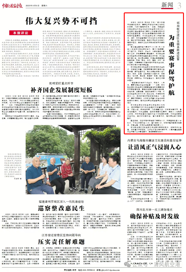 第三届全国技能大赛将于2025年9月19日至23日在郑州航空港区举办。筹办大型赛事,涉及部门多、项目多、资金多。为顺利推进大赛筹办工作、护航赛事筹办廉洁高效,郑州航空港区纪检监察工委制定监督检查工作方案,成立监督协调小组,细化责任清单,构建全周期管理的监督机制,聚焦“责任、作风、措施、成效”四个维度,对赛事筹办过程中相关项目资金流向、政务服务等多方面开展监督。