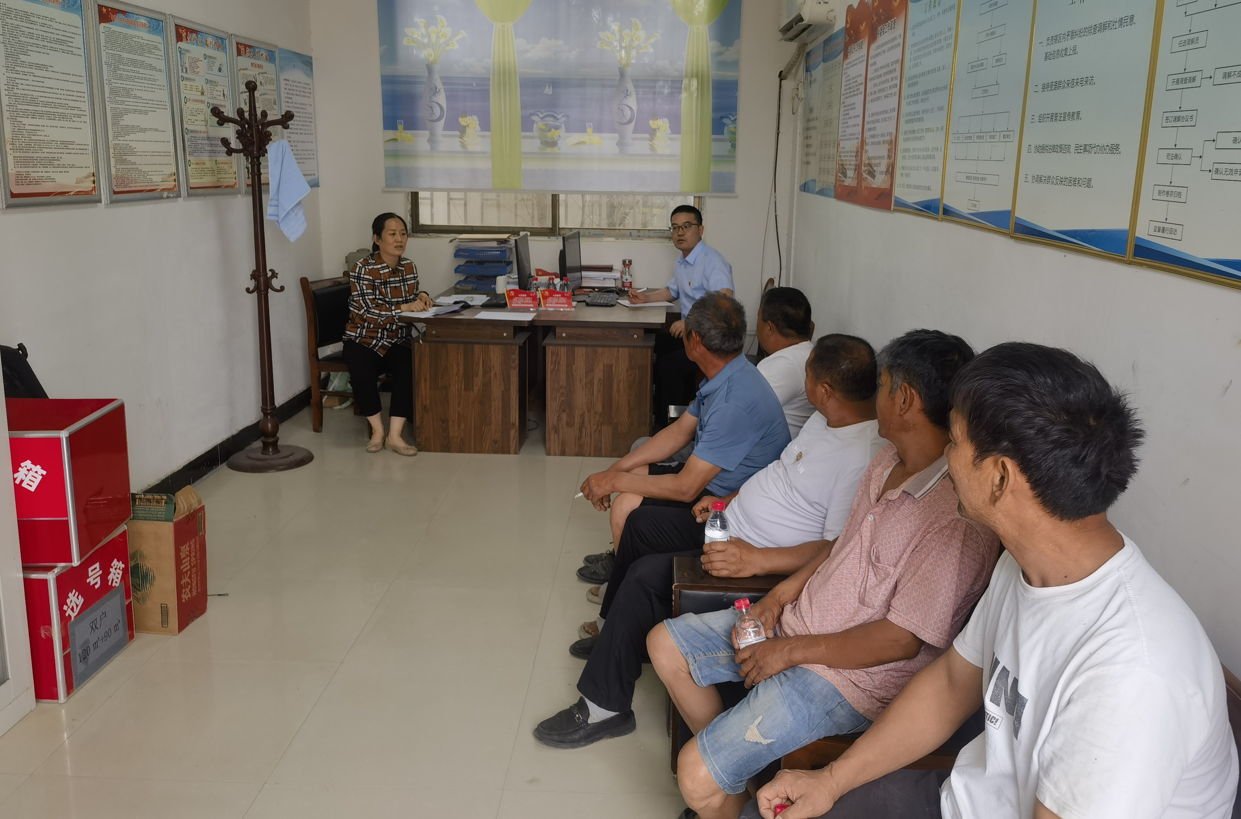 第四纪检监察室工作人员来到小关庄村委会,向被多收取电费的村民反馈案件查办情况,按标准退还村民多交的电费。