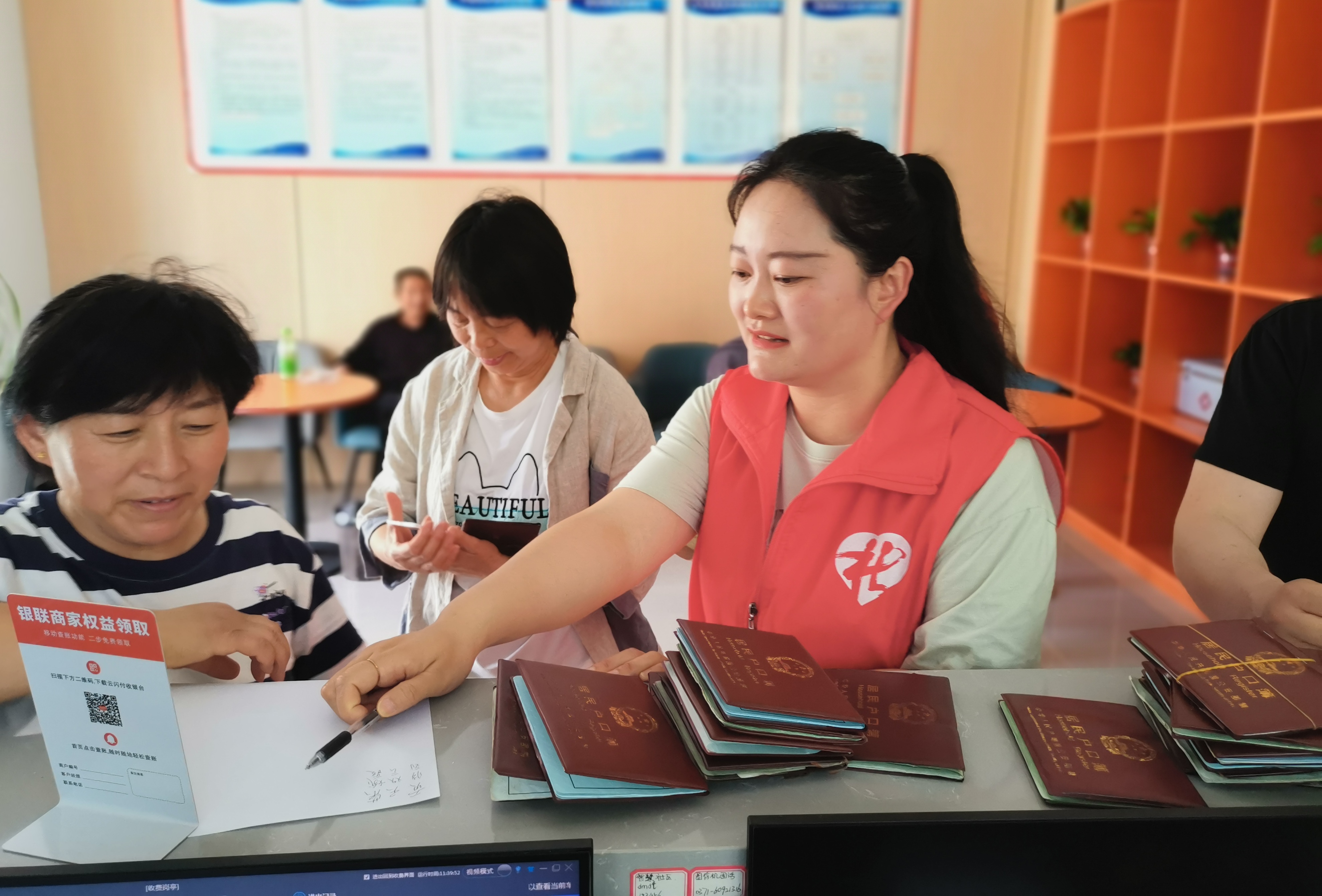 滨河办事处纪工委联合办事处社会事业办,通过滨河便民服务大厅、郑好办等渠道,开展老年卡业务咨询、新办、年审工作,为辖区302位居民新办老年卡。图为该办事处纪工委志愿者在银河社区为居民讲解办理流程。