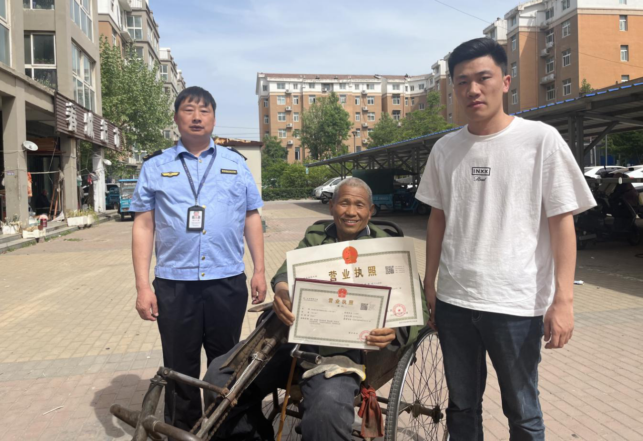 市场监督管理和营商环境局主动为残疾个体工商户进行网上登记、上传资料,前往所属办事处帮其开具相关证明,当天就办理好营业执照,亲自送到经营者手中。