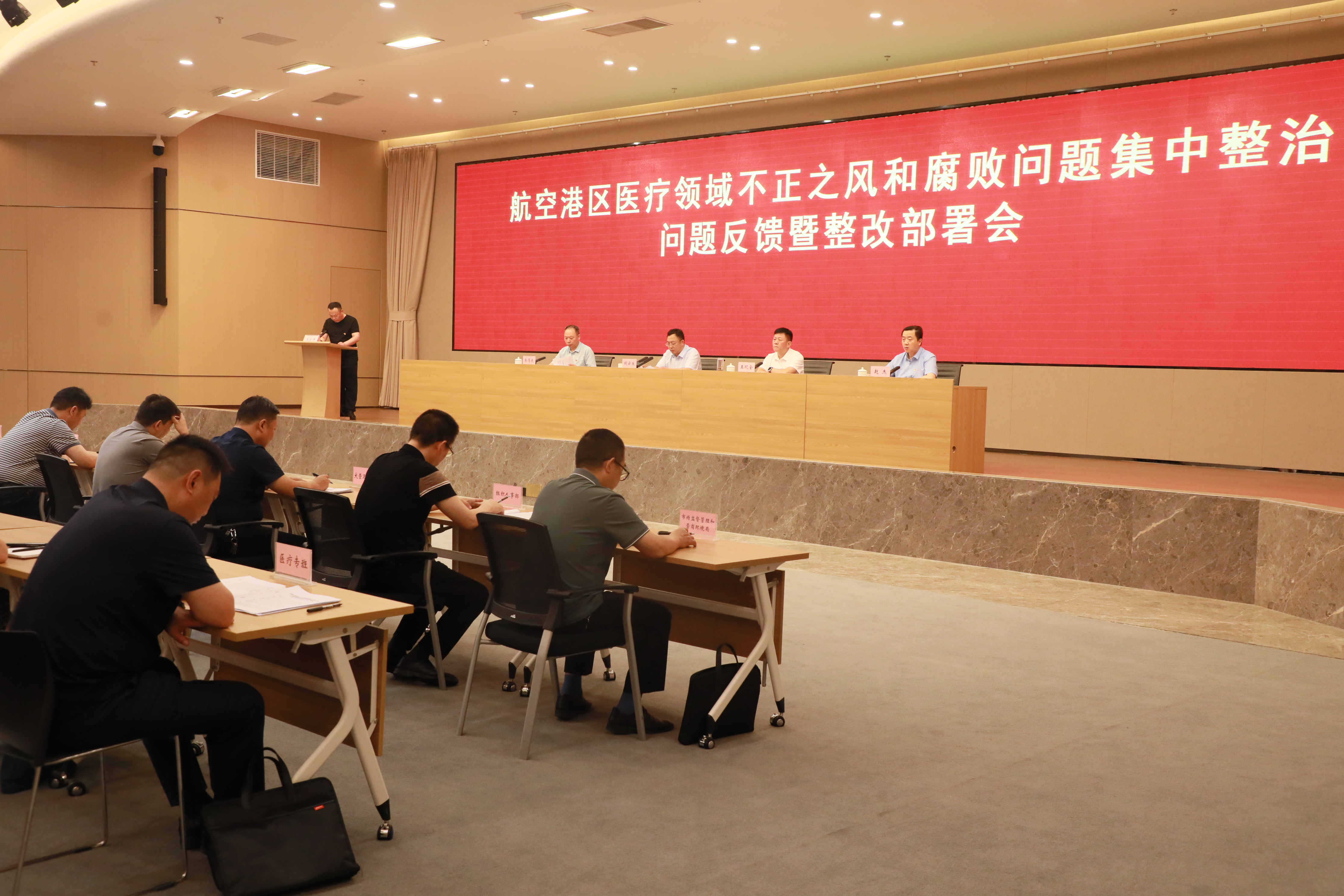 7月4日,航空港区纪检监察工委组织召开医疗领域不正之风和腐败问题集中整治问题反馈暨整改部署会,旨在深入贯彻落实习近平总书记关于医疗领域系列重要讲话和指示批示精神,督促相关职能部门认真履行主体责任,深入整治医疗领域不正之风和腐败问题,纠治顽瘴痼疾,构建长效机制。区党工委委员、纪检监察工委书记胡云生出席会议并讲话。
